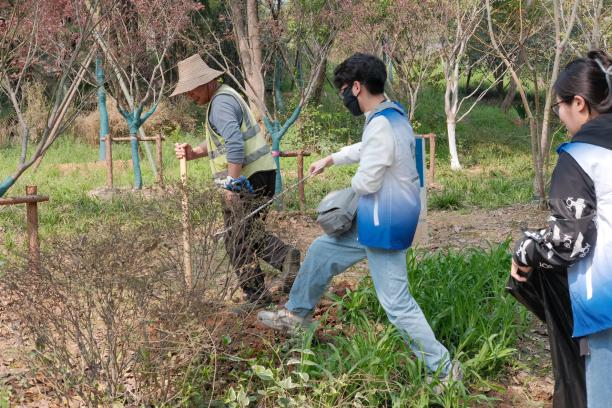 春意盎然启长卷,阳光熠熠绘新篇。青年志愿者们提前在北区大门集合进行线下签到和发放工具。本次活动由学院青年志愿者协会统筹安排整体工作,组织20名志愿者前往东湖旅游风景区,通过垃圾清理、清洁公共设施和整理落叶等实践方式,完成户外环保志愿服务工作。