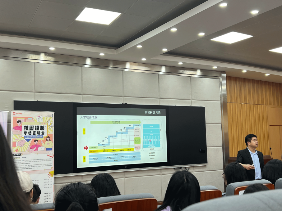 首先,田总围绕企业概况、招聘需求、校企合作三个方面向同学们介绍七家公司的基本情况,并与同学们分享三维空间团队所获2019届“国际建筑三维大赛”设计金奖的优秀案例,以帮助同学们了解国际及商业作品的设计思路、设计难点与解决方法。