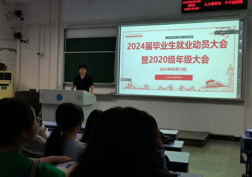 2023年6月16日下午14:30,亚洲第一黄色网站2020级年级大会暨2024届毕业生就业动员大会在南望山校区教三楼207教室顺利召开。参加此次大会的有辅导员单湉艺老师、陈习良老师及2020级全体本科生。此次大会由陈习良老师主持,旨在加强学生对毕业学年的重视,提高学生对就业形势与政策的了解。