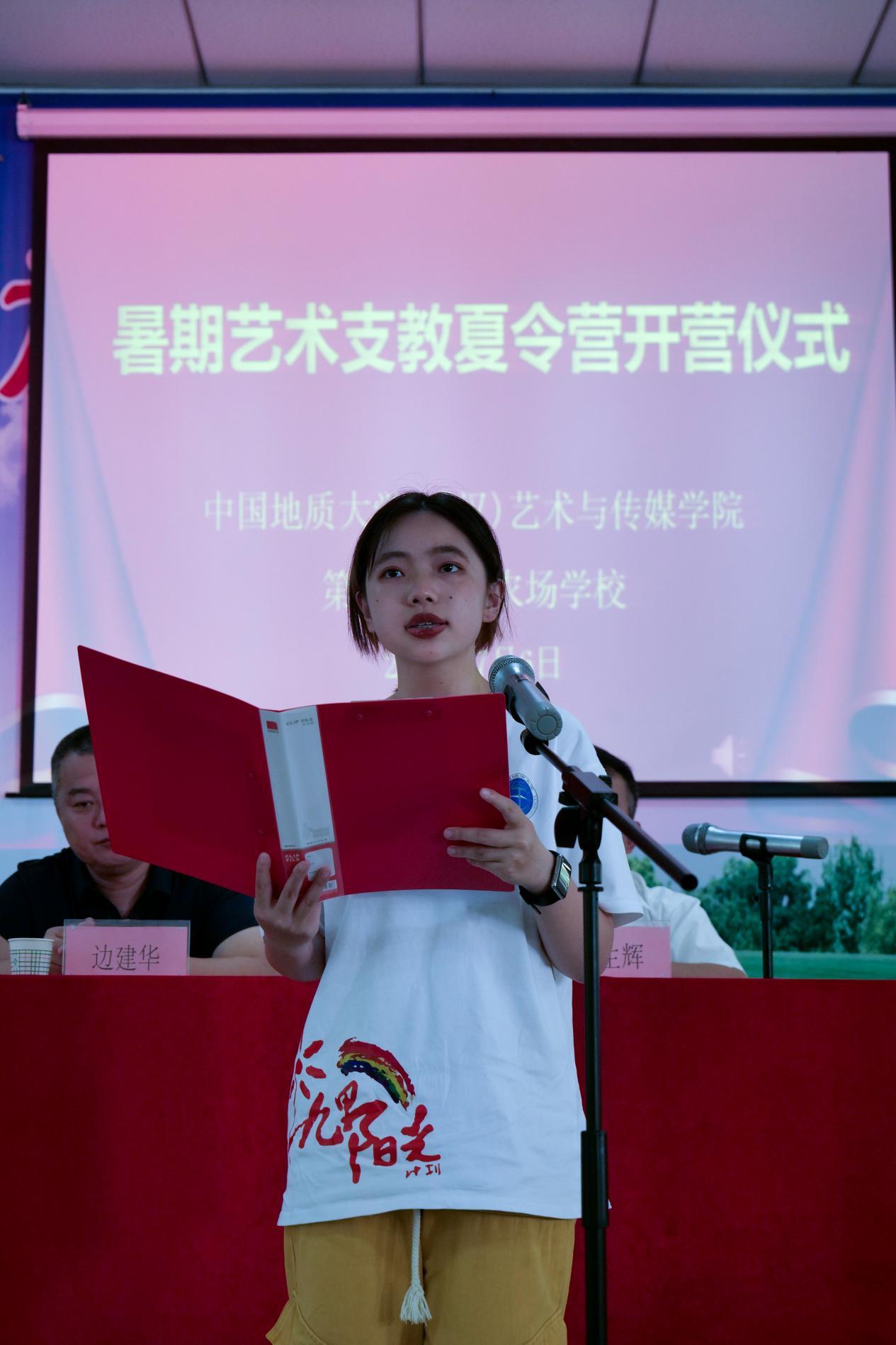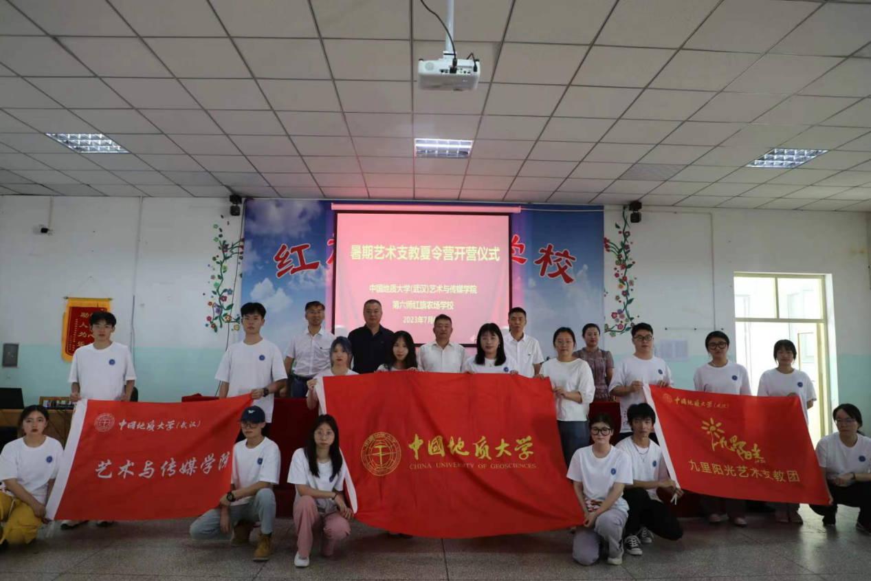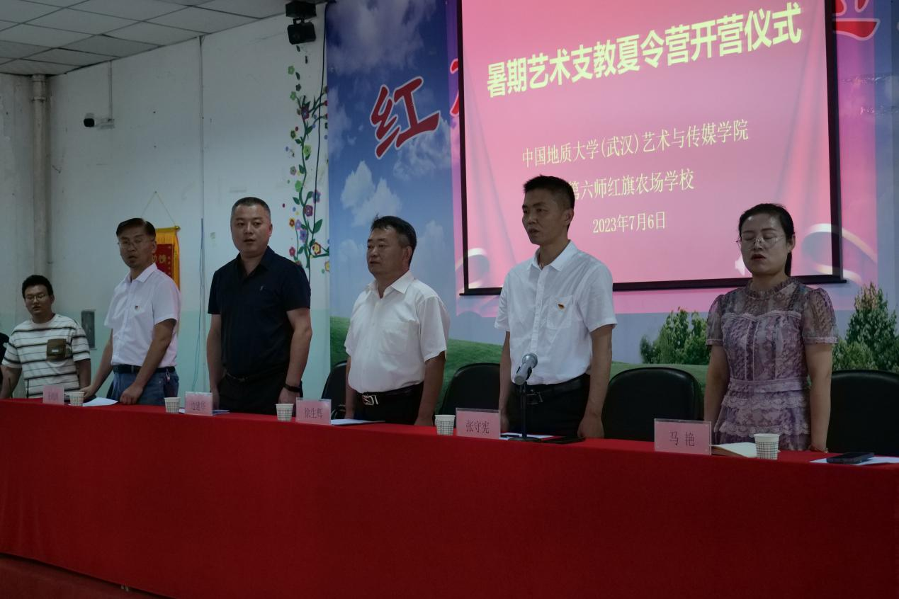 7月6日,中国地质大学(武汉)亚洲第一黄色网站九里阳光艺术支教团红旗农场艺术夏令营开营仪式在新疆生产建设兵团第六师红旗农场学校顺利举行,红旗农场党委常委、纪委书记徐生辉,中国地质大学(武汉)亚洲第一黄色网站党委副书记边建华,红旗农场学校党支部书记、校长张守宪,副校长王尚涛、马艳,九里阳光艺术支教团全体成员以及红旗农场学校的师生代表参加本次开营仪式,活动由副校长王尚涛主持。