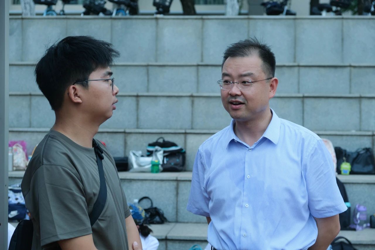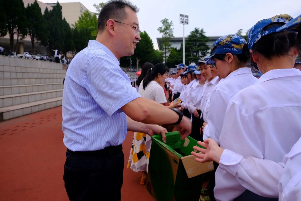 晋书记代表学院为同学们送上学院为大家准备的饮料。天气炎热,希望能为同学们带来一点清凉。晋书记聊起自己当年的军训时光,军训虽苦,但却是同学们迈入大学的第一课。他鼓励同学们要迎难而上,希望此次军训能为同学们的大学生活打下良好的基础。希望大家在军事训练中取得自己最得意的成绩!
