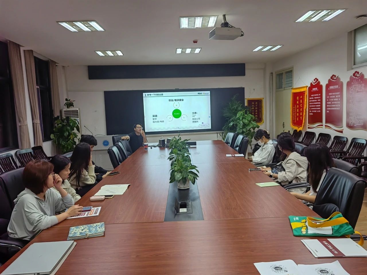2023年9月21日晚上19:00,“艺·堂”论坛第十四期在艺媒楼1209顺利召开。新东方教育科技集团有限公司武汉分公司讲师袁柳明围绕当今就业现状、出国留学状况和雅思备考规划进行了生动有趣的讲述。
