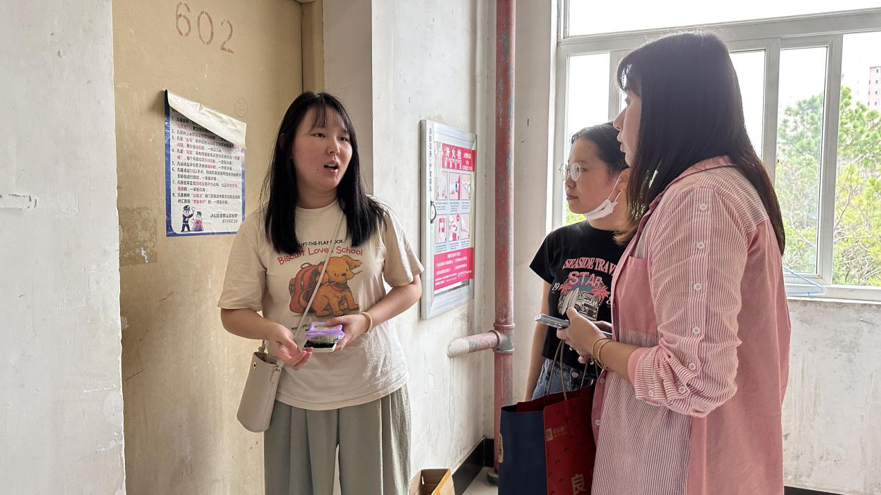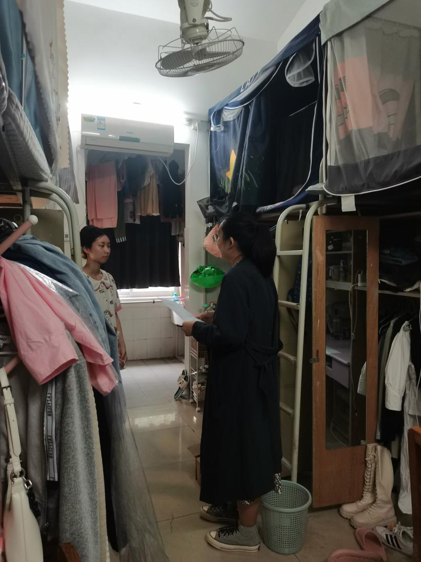在中秋节、国庆节双节来临之际,为严格落实学校各项安全规定,进一步增强学生安全意识、筑牢校园安全防线,营造温馨文明的寝室环境,学工组全体专兼职辅导员及研会成员在党委副书记边建华的带领下于9月28日下午16:00走访学生宿舍,为同学们送上了关怀和温暖。