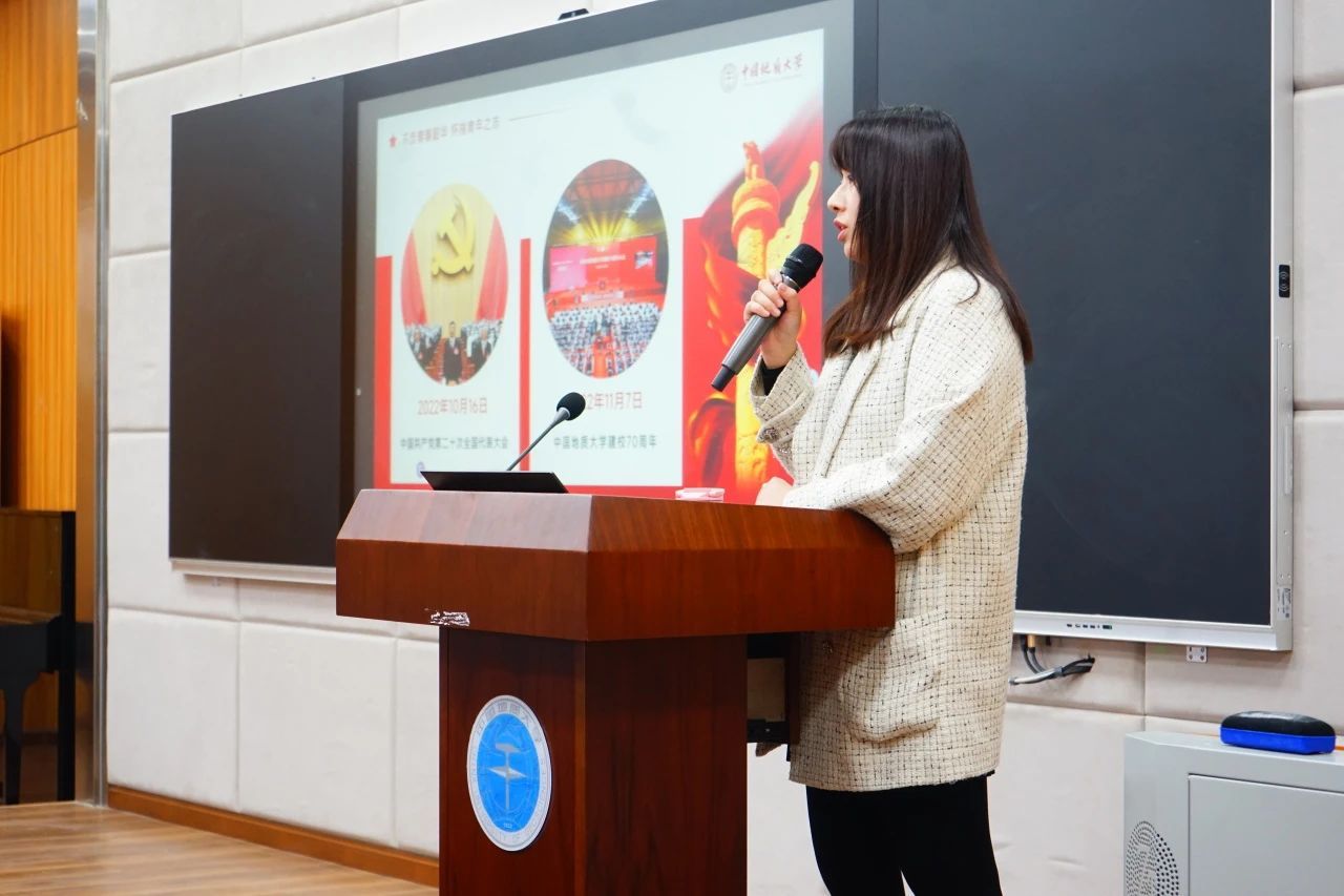 第一部分,单湉艺老师用视频《新时代好青年》片段为引,提出《不负青春韶华,怀揣青年之志》的演讲主题。以党的二十大报告出发,从青年的精神面貌、人才培养、政治素养三个方面对当代青年的精神面貌进行总结,并对青年提出热切期望与勉励。随后又分“雄关漫道真如铁”、“人生万事需自为”、“乘风破浪会有时”三个专题从多个层面讲述了多个年代、多个领域青年人用青春之热诚为国家之大事业而奋斗的无上光荣,深切提出了作为新时代青年的大有可为与青春风采。单老师指出,我们青年人应该学习党的二十大精神,做有理想、敢担当、能吃苦、肯奋斗的国之栋梁,为实现中华民族伟大复兴的中国梦不懈奋斗。