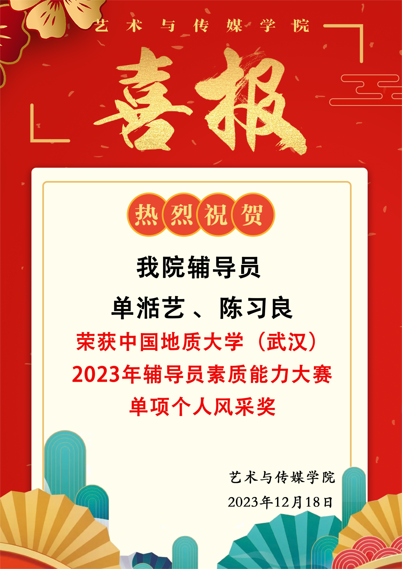 喜报 | 热烈祝贺我院辅导员单湉艺、陈习良荣获中国地质大学(武汉)2023年辅导员素质能力大赛单项个人风采奖