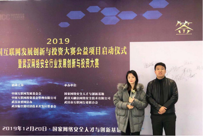 2019年12月20日上午9:00由中国互联网发展基金会、中国互联网投资基金管理有限公司、武汉市委网信办、武汉临空港经济技术开发区管委会共同主办的“首届中国互联网发展创新与投资大赛”启动仪式暨武汉网络安全行业发展创新与投资大赛于在武汉东西湖区国家网络安全人才与创新基地展示中心举办。经过层层评选,共选出10家获奖企业。由我院代棋帆博士为负责人的此方智能环境设计工程有限公司荣获优秀奖。来自中国互联网和网络安全行业的领导、专家为企业颁奖并合影留念。