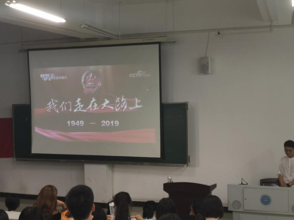 随后,全体党员集体观看《我们走在大路上》大型文献专题片节选片段,感受伟大祖国风雨兼程、砥砺前行的伟大历程。活动最后,全体党员齐唱《我和我的祖国》,为伟大祖国70周年华诞献上最真挚的祝福。