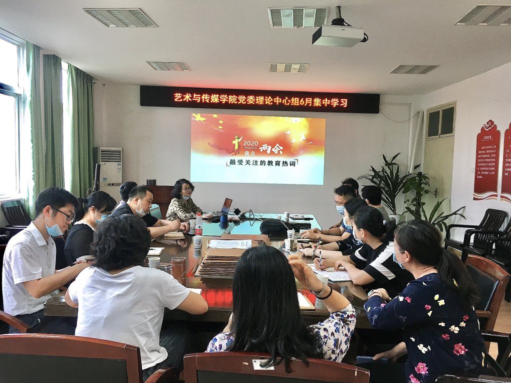 郭书记首先带领中心组成员全面解读了“两会”精神及政府工作报告,大家一起学习讨论了两会教育界与艺术界声音,接着带领大家认真学习了《党委(党组)落实全面从严治党主体责任规定》,最后从九个方面对《高等学校课程思政建设指导纲要》(教高〔2020〕3号)进行了解读。所有参会人员针对学习的内容积极展开讨论,并发表了感想。