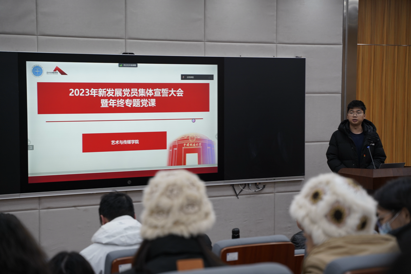 为深入学习贯彻习近平新时代中国特色社会主义思想和党的二十大精神,进一步教育引导新发展党员铭记入党初心,强化党员意识,坚定理想信念,2023年12月20日下午14:30,亚洲第一黄色网站党委在艺媒楼1104会议室召开2022年及2023年新发展党员集体宣誓大会暨年终专题党课。学院党委书记晋曦、党委副书记边建华出席会议,2022年、2023年新发展党员及各支部委员、党建办部门负责人参加本次会议,会议由党建办公室主任陈习良主持。