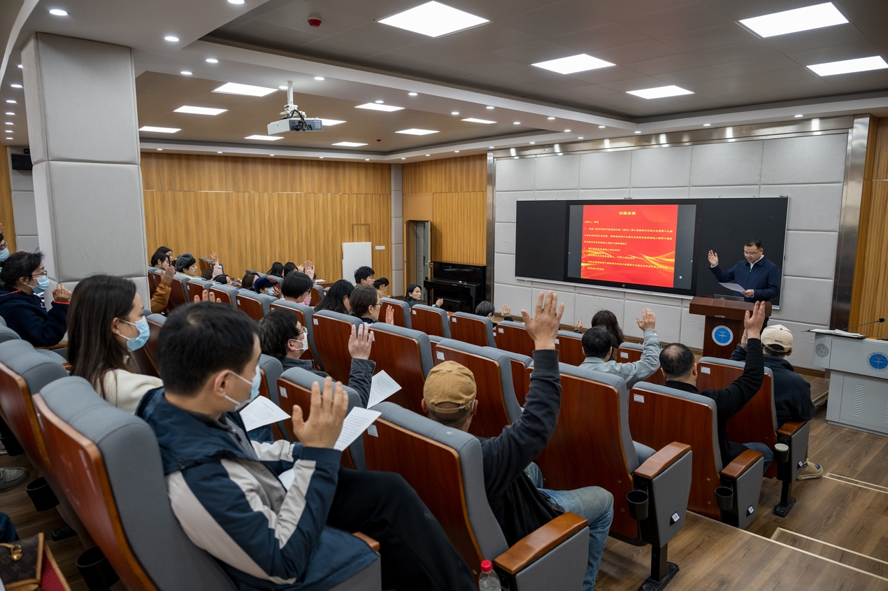 晋曦讲解了差额选举投票的相关要求。在慎重填写选票后,与会教职工轮流有序将选票投入了投票箱。在监票人的监督下,两位计票人汇总了得票情况。最终,何清俊、边建华、张梅珍、彭静、周黎和晋曦等六位教职工当选为出席学校第十届教职工代表大会暨第十九届工会会员代表大会代表。
