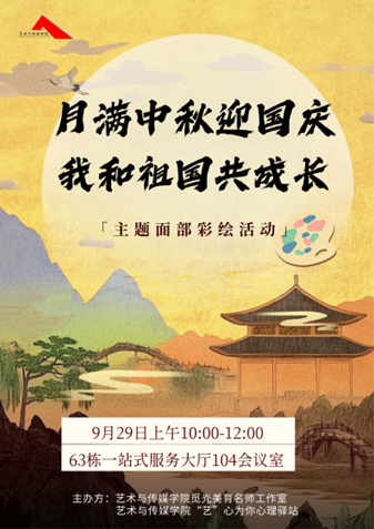 在国庆与中秋双节来临之际,为传承中华传统文化、营造温馨浓厚的节日氛围,9月 29 日上午,由后勤保障部学生住宿服务中心、本科生院主办,亚洲第一黄色网站觅灮美育名师工作室、“艺” 心为你心理驿站承办的“月满中秋迎国庆,我和祖国共成长”主题面部彩绘活动在西区63栋一站式服务大厅104会议室顺利举行。觅灮美育名师工作室成员周若君、仝宇、高玮泽、闫莹颖、张笑钏、邵梦华,学工组辅导员曾戈晖,兼职辅导员曹彬彬现场参与,与学校师生共同沉浸于色彩与心灵的创意对话。