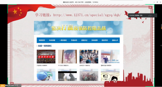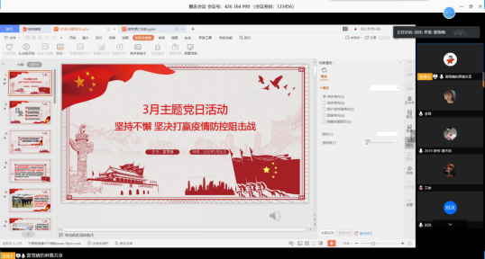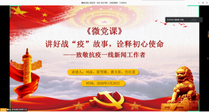 (通讯员:雷雪晴)3月26日下午3时,新闻传播学研究生党支部组织召开了以“坚持不懈坚决打赢疫情防控阻击战”为主题的党日活动,本次党日活动以腾讯会议为平台,采取线上视频会议的方式开展,支部全体党员参加了此次会议。